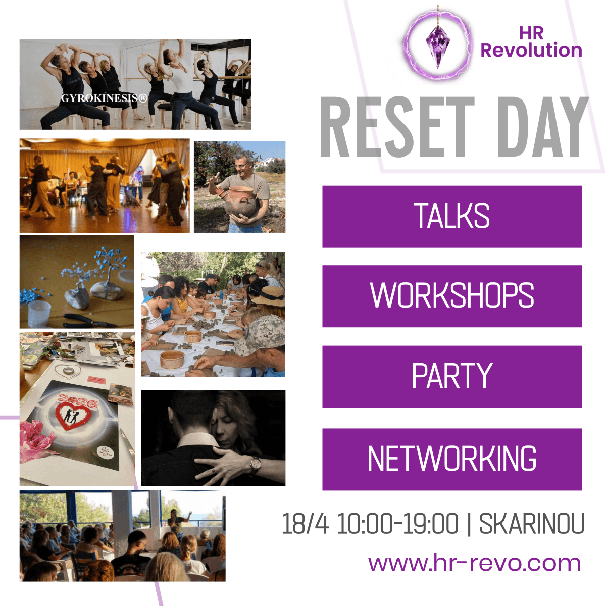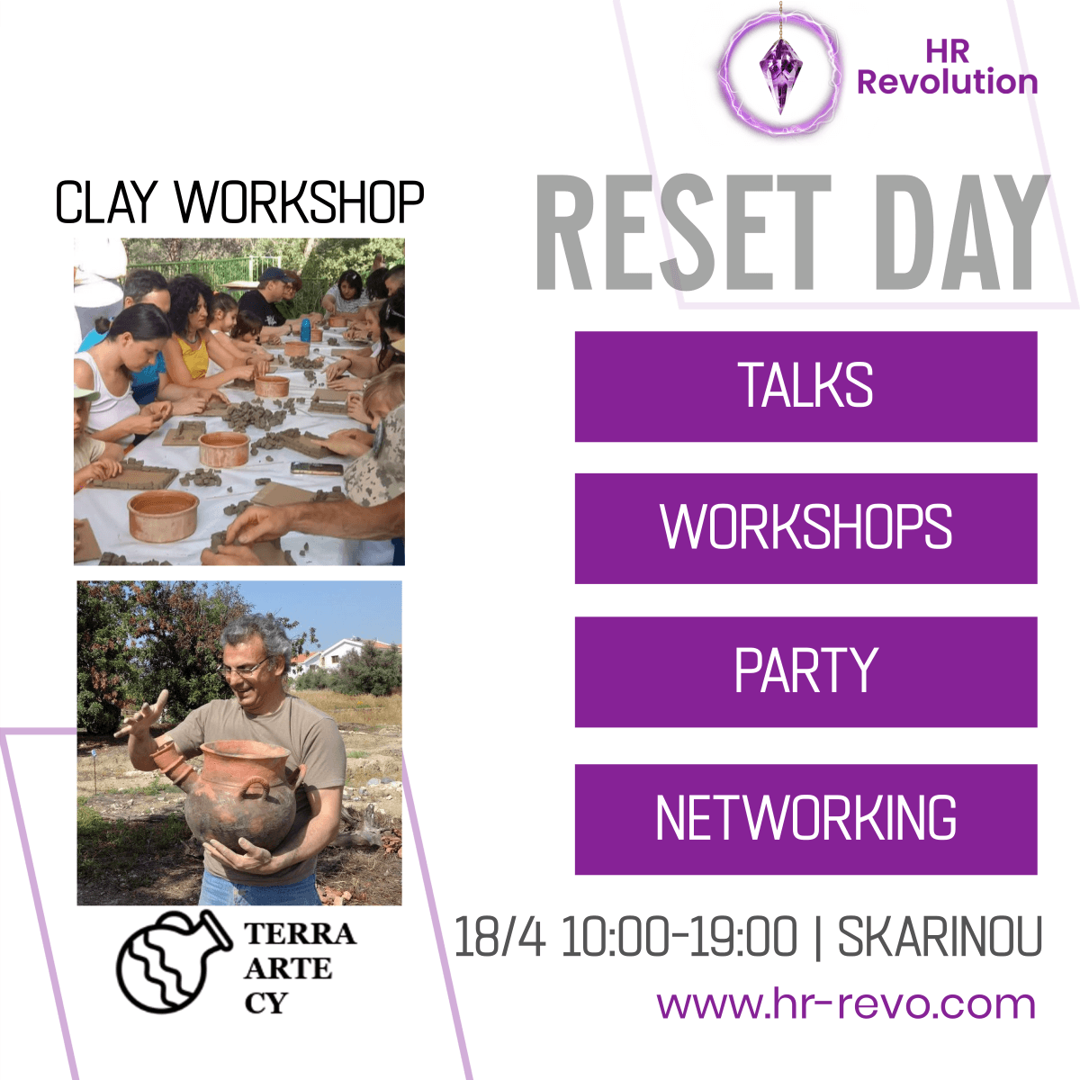 A full day in Skarinou designed to help you pause, recharge, and reconnect through creative workshops, movement, and meaningful conversations, with great facilitators offering Pilates, meditation, painting, clay, Tango workshops, among others, alongside short talks on work life balance, creativity, and personal clarity.